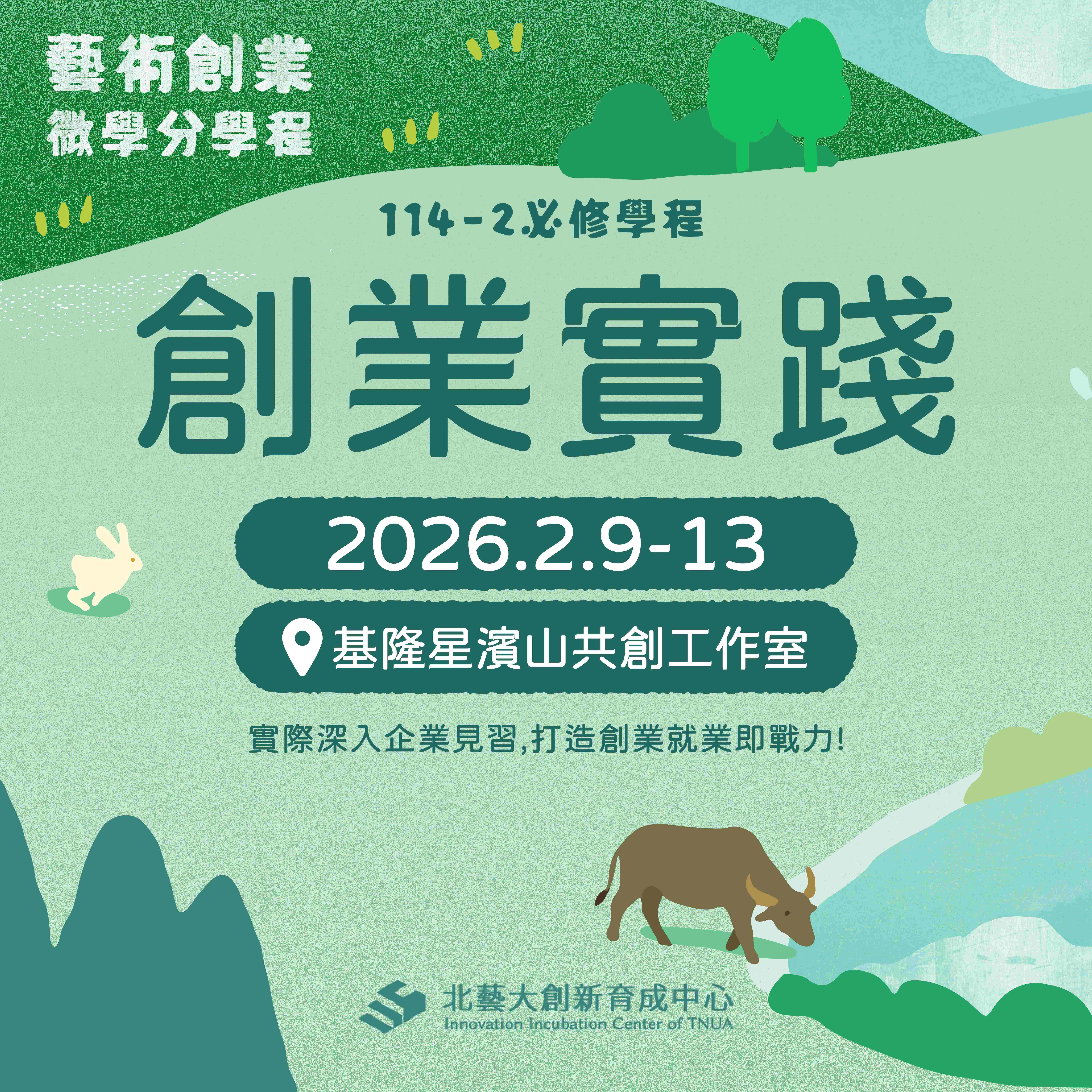 【藝術創業微學分學程】114-2「創業實踐」課程開放申請~至12/15止
