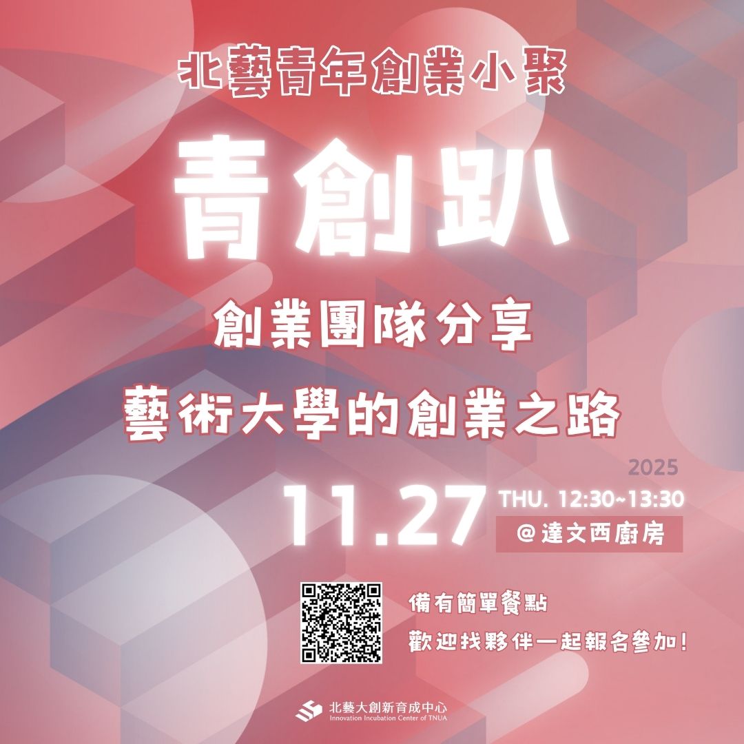 【青創趴】11/27 北藝青年創業小聚(報名至11/24止)